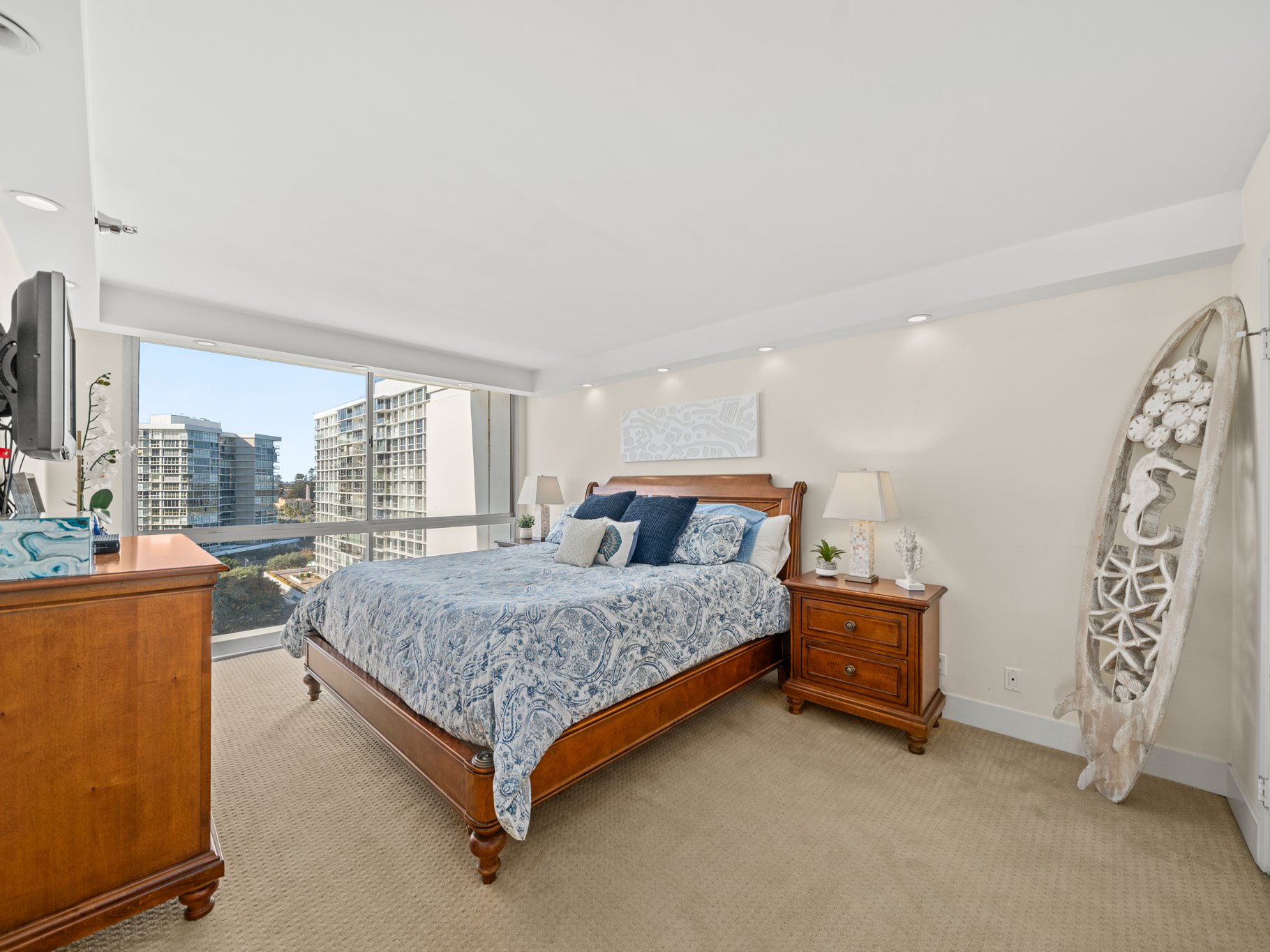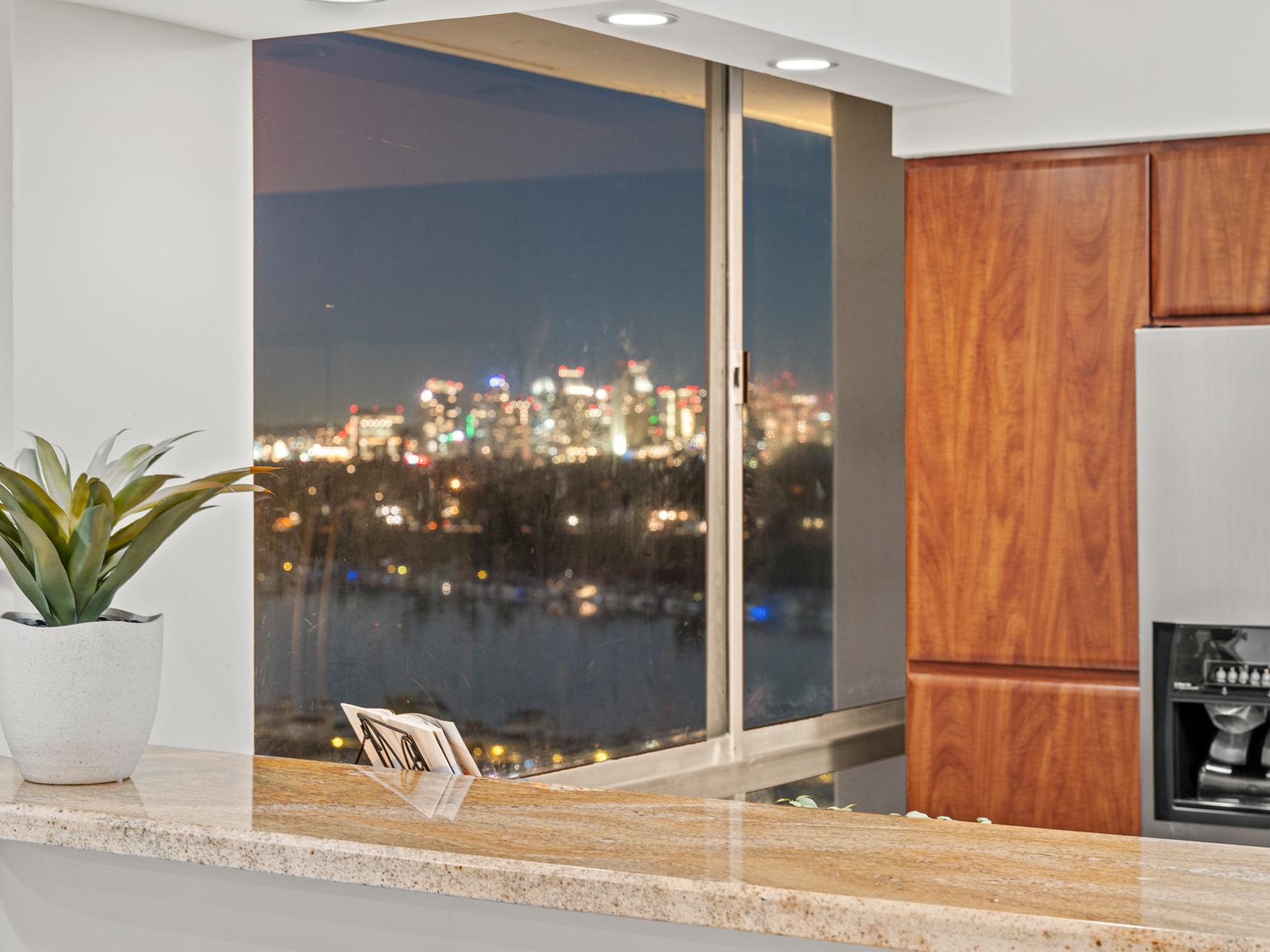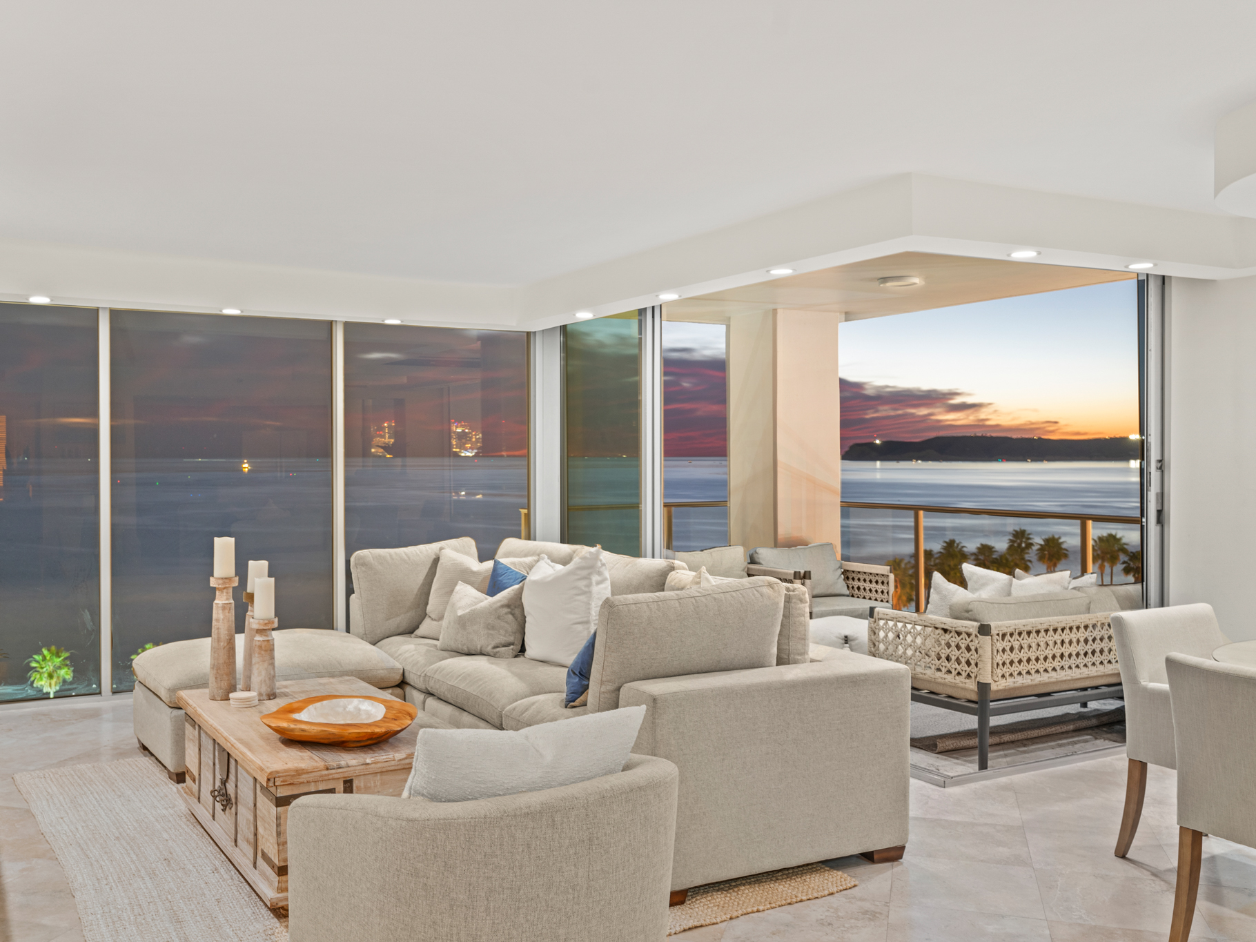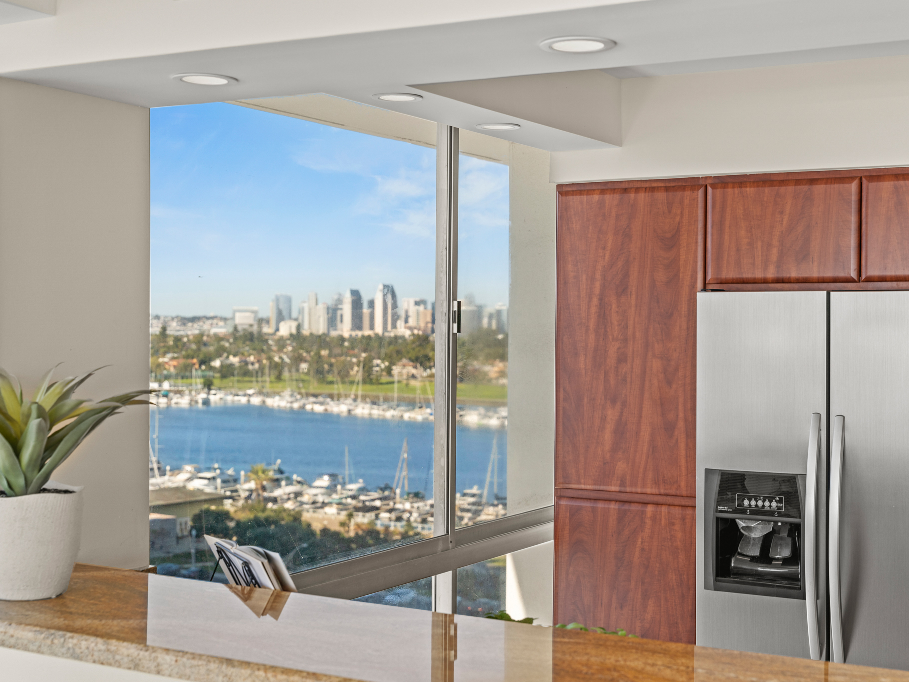 Situated on the 9th floor, this home captures sweeping Pacific Ocean views, Point Loma sunsets, and the San Diego Bay and downtown skyline, creating breathtaking scenery from sunrise to the city lights at night. Fireworks over the bay, glowing sunsets, and the sound of the waves become part of everyday life.