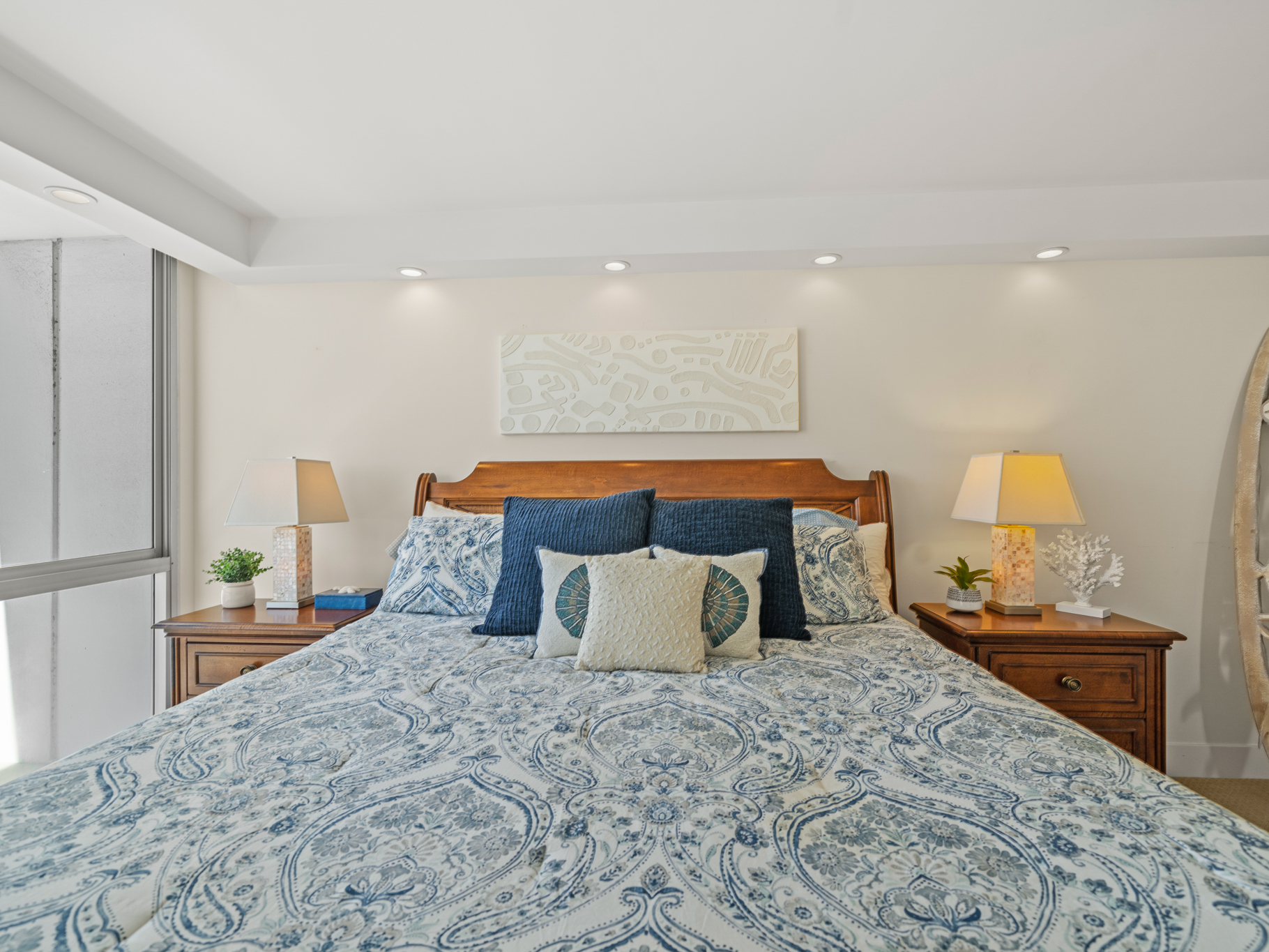 The primary suite offers ocean views, a walk-in closet, and a spa-inspired bath with a jacuzzi soaking tub.