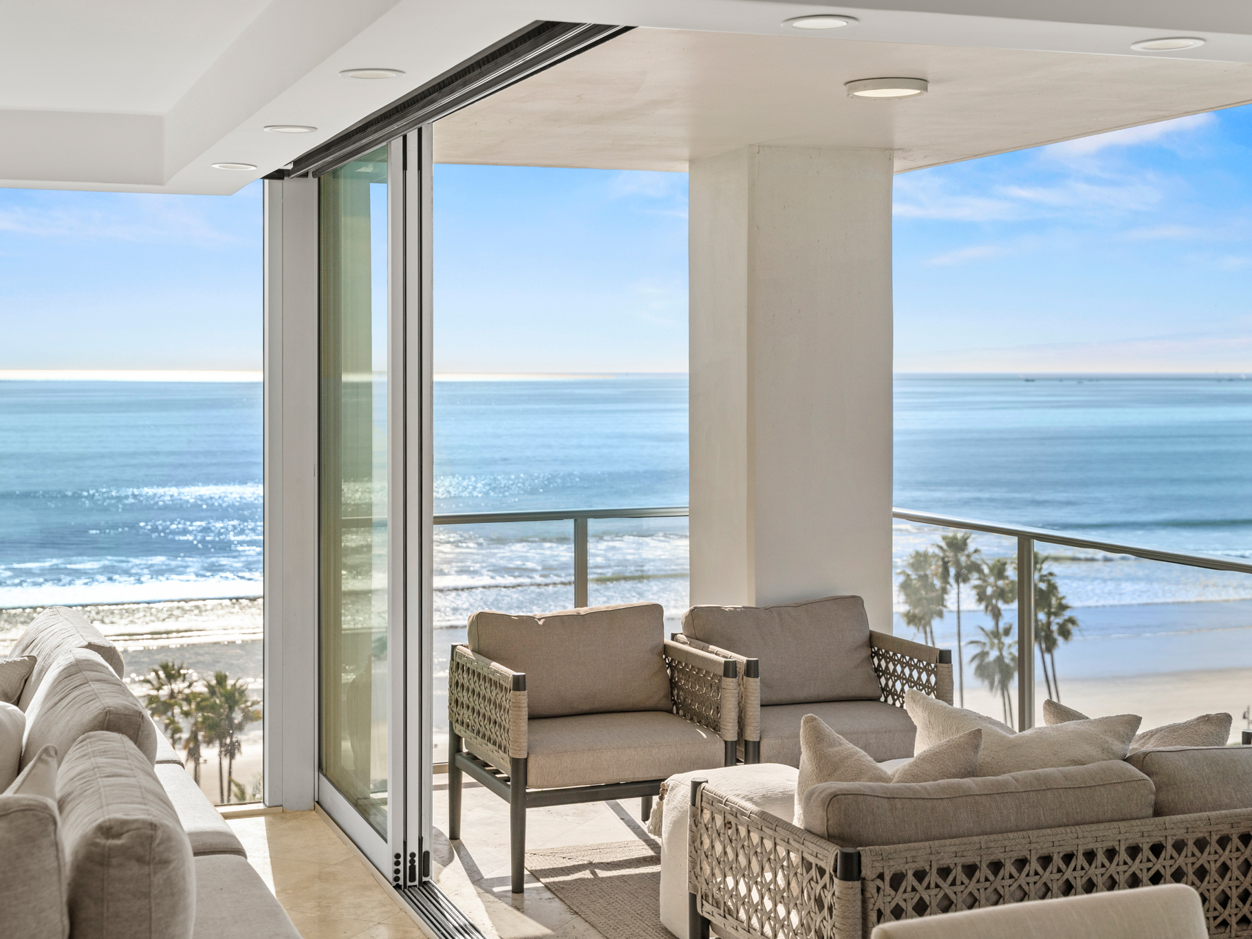 With ocean views from every room, this turnkey and professionally decorated home is ready for personal enjoyment as a home or exceptional rental opportunity. With its ideal height, tasteful finishes, and unforgettable views in every direction, this is a rare gem for the discerning buyer who values breathtaking views, beachfront living, and everything Coronado has to offer!